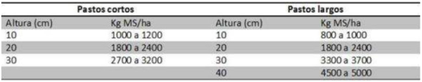• Hacer una estimación rápida del forraje disponible. Para eso se recomienda utilizar la relación entre altura y cantidad de pasto (en kg de materia seca/ha), según se trate de pastos cortos (ej: pasto horqueta, etc.) o altos (espartillo, paja amarilla, etc.):