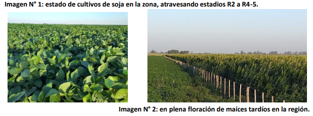 1- Las condiciones reinantes en la zona, con buenas precipitaciones y altas temperaturas, son favorables tanto para el buen desarrollo de cultivos como para las altas tasas reproductivas de plagas. Esto se ve a campo y masificado en la última semana en nuestra zona. Imagen N° 1 y 2.