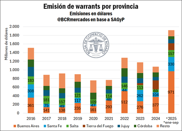 Récord histórico de warrants en Argentina: la emisión crece 116% en 2025 y Santa Fe lidera el boom