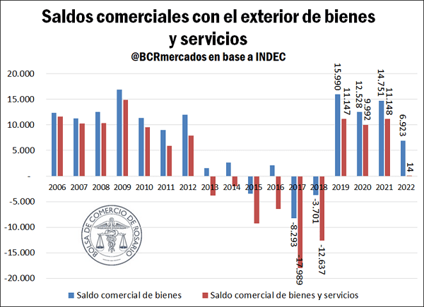 Más aún, si tomamos los últimos diez años, el saldo comercial de bienes totaliza un saldo positivo de más de US$ 41.000 millones. No obstante, si tomamos el saldo comercial con el exterior de bienes e incluimos servicios, nos da un déficit que supera los US$ 20.000 millones.