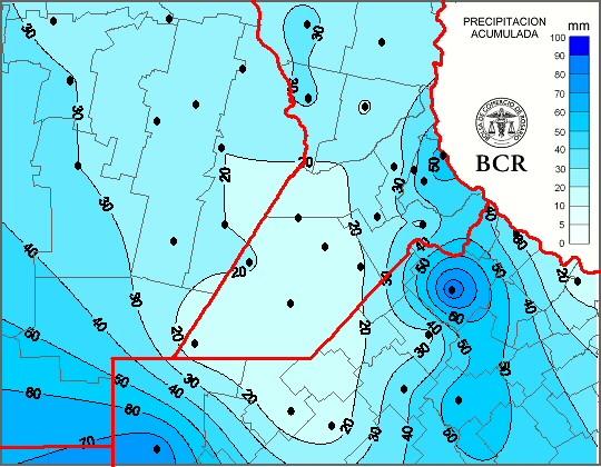 Tal como se esperaba, el patrón de lluvias benefició al oeste de la región pampeña. En especial al SO cordobés que alcanzó acumulados de 50 a 70 mm. Puntualmente, se destaca Río Cuarto con 140 mm que fueron acompañados de granizo. En Bs As, el centro oeste recibió lluvias quye dejaron entre 30 a 40mm. Y en La Pampa, los registros alcanzaron los 50 a 60 mm. Hubo gratas sorpresas de acumulados puntuales importantes en algunas localidades como en el centro de Santa: Rafaela alcanzó los 55mm.