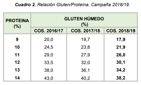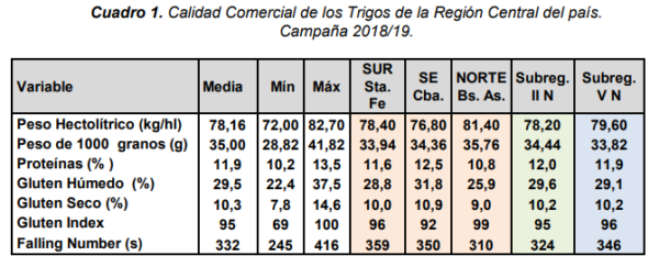 La campaña 2018/19 sufrió demasiados eventos negativos. De todas formas, la fertilización y los controles de enfermedades hicieron que los rendimientos no hayan caído aún más. La región central del país presentó parámetros calidad comercial e industrial de buenos a muy buenos. Se destaca el alto contenido de proteína, el mayor de los últimos 5 años, con alto contenido de gluten y fuerza panadera evidenciado a través del W del alveograma, con masas extensibles dando como resultado muy buenos volúmenes de pan.