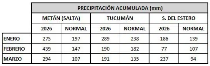 Además, en lo que va del año, la zona ya acumula más de 1.000 mm, equivalente a su promedio anual, mientras que en Santiago del Estero se registraron 237 mm en marzo, más del doble de lo habitual.