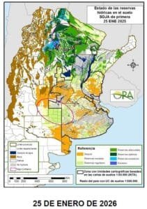 La contracara del mapa se observa en La Pampa y el oeste de Buenos Aires, donde los mayores acumulados de lluvia de la última semana permitieron una recuperación significativa. Estas áreas pasaron de estados de sequía o reservas críticas a perfiles mayormente clasificados como regulares a adecuados, aportando algo de alivio en una campaña marcada por la alta variabilidad climática.