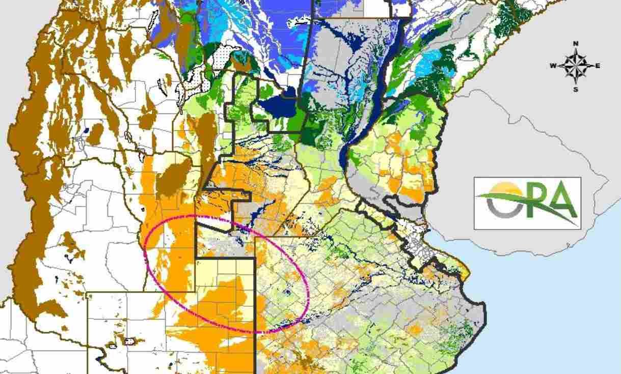 El panorama se vuelve más ajustado en San Luis (incluso con sistemas de riego), el centro y sur de Córdoba, el sur de Santa Fe, el centro y sur entrerriano, el norte de Buenos Aires y el sur bonaerense. Allí se consolidan suelos con reservas entre adecuadas y escasas, con sectores que ya ingresan en condición de sequía.