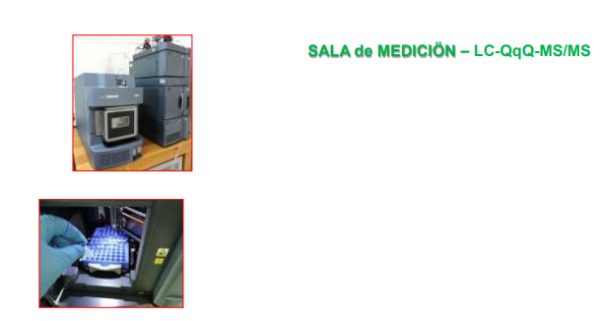 Este procedimiento se realizó en fechas diferentes procesando naranja Valencia, una de las variedades más industrializadas en la zona. Los análisis se realizaron en el Laboratorio de Pesticidas de la EEA Concordia del INTA (ver Fig. 1). Los residuos se extrajeron bajo el procedimiento (CEN) Standard Method EN 15662 y se analizaron por cromatografía líquida acoplado a espectrometría de masas de triple cuadrupolo en tándem (LCQqQ-MS/MS). Se seleccionaron 38 p.a. utilizados en la zona más otros con posibilidad de encontrarse y así poder descartarlos en caso de ausencia; entre ellos: