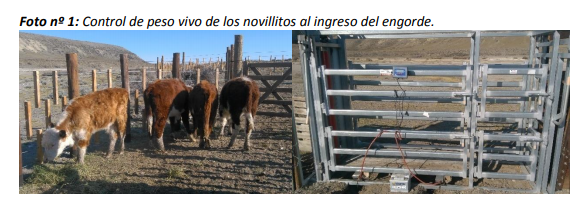 Considerando esta situación, se propuso en un establecimiento ganadero de la zona de influencia de la AER Los Antiguos, la alternativa de realizar el engorde de los terneros. El comienzo del engorde se definió en el mes de septiembre esencialmente por dos motivos. El primero, relacionado con las condiciones climáticas: se comienza a la salida de invierno debido a que en los meses el frío aumenta los requerimientos nutricionales para la termorregulación y a su vez se requiere de mayor infraestructura para proteger a los animales (Arias, 2008). Segundo, fue el factor precio del novillito gordo, los valores de la hacienda terminada se incrementan hacia finales del año (Inf. de Precios de Ganados y Carnes de la Patagonia), por ello se buscó, hacer coincidir el momento de faena con dicha etapa del mercado.