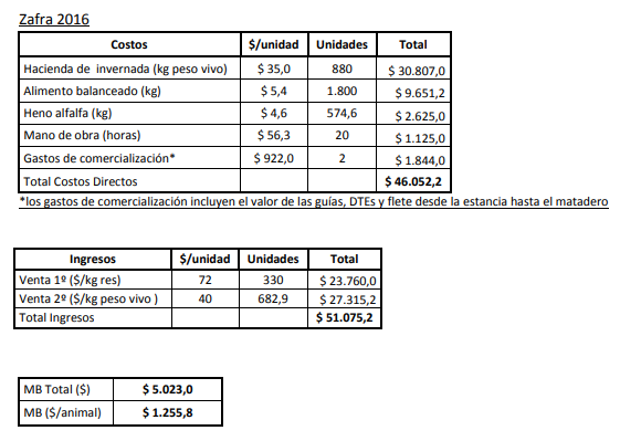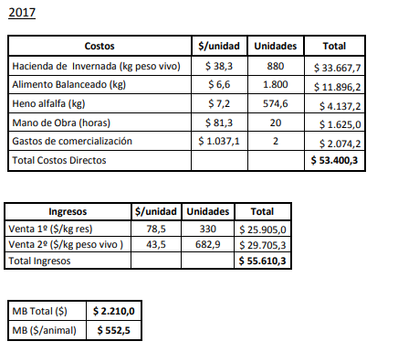 A continuación, se presenta el margen bruto resultante para los años 2016 y 2017 en función de los datos productivos obtenidos: