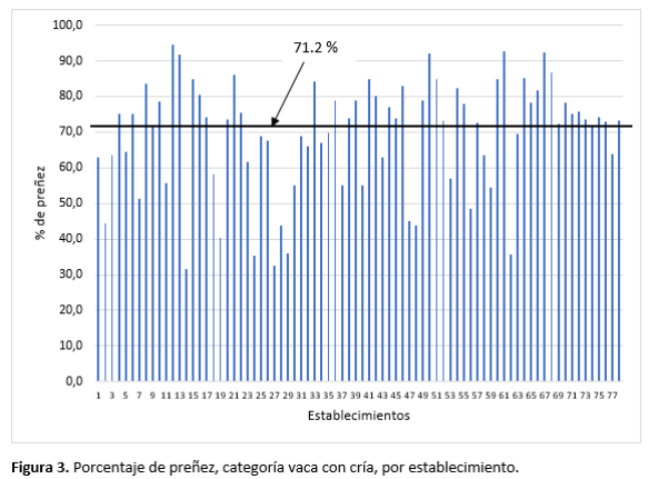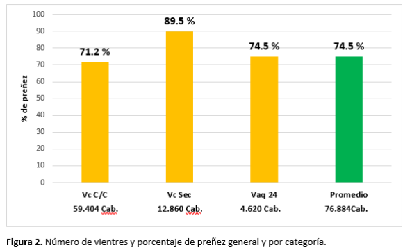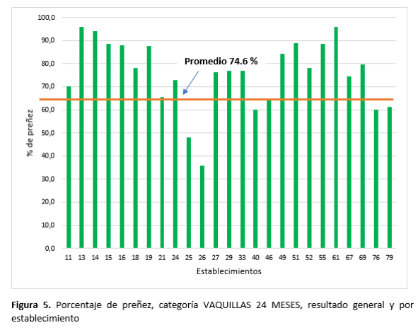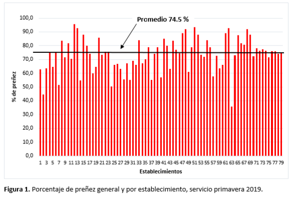 El porcentaje de preñez general logrado en estos establecimientos fue de 74.5% (Figura 1).