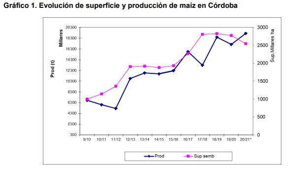 La superficie aumentó de un millón a comienzos de la década pasada a un valor superior a los 2,5 millones de hectáreas que se ha sostenido en las últimas cuatro campañas, con una leve disminución en la última 2020/21 por la situación hídrica más crítica a comienzos de ese ciclo (año Niña). La producción mantuvo también una tendencia creciente en todo el período, incluso en la última campaña en la que, al mejorar las condiciones hídricas durante la parte reproductiva en el ciclo del cereal, se pudo sostener una adecuada productividad.