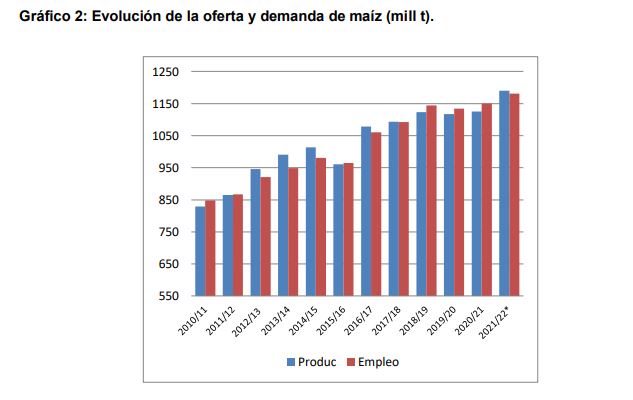 Teniendo en cuenta el aporte agronómico del cereal en los esquemas agrícolas surge, como objetivo del informe, evaluar la situación económica en la nueva campaña 2021/22 y analizar cómo se modifican los indicadores comparados con los de cultivos competitivos. Complementariamente se consideran aspectos de mediano plazo, que incluyen factores ambientales para evaluar su efecto en los resultados del maíz. Para considerar la situación esperada se muestra, en el gráfico 2, la evolución de las variables fundamentales del mercado internacional desde el ciclo 2010/11.