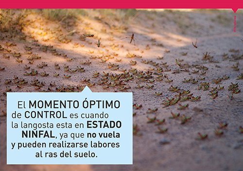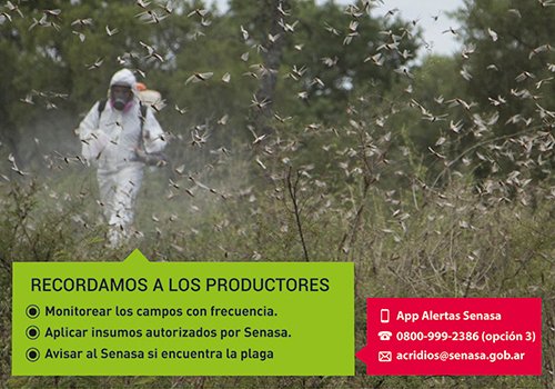 Como es un problema que depende de múltiples factores, el comité interinstitucional de crisis por emergencia de la langosta comandado por el Senasa advierte sobre la necesidad de realizar el monitoreo permanente de los lotes y denunciar la presencia de langostas lo antes posible a los organismos involucrados.