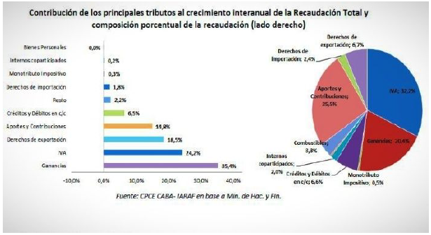 En cambio, los mayores componentes de la recaudación tributaria, el IVA Neto y Ganancias (ambos suman el