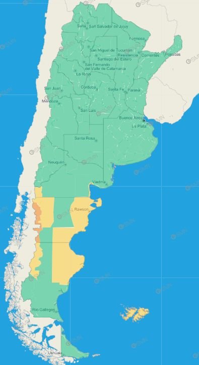 Chubut: Meseta de Escalante – Sarmiento – Sudoeste de Florentino Ameghino – Este de Mártires – Este de Telsen – Gaiman – Meseta de Biedma – Meseta de Florentino Ameghino – Meseta de Rawson – Costa de Biedma