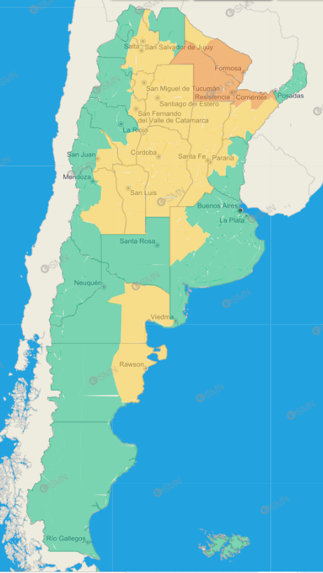 Provincias afectadas: Buenos Aires, Catamarca, Chubut, Córdoba, Entre Ríos, La Pampa, Mendoza, Río Negro, Salta, San Juan, San Luis, Tucumán