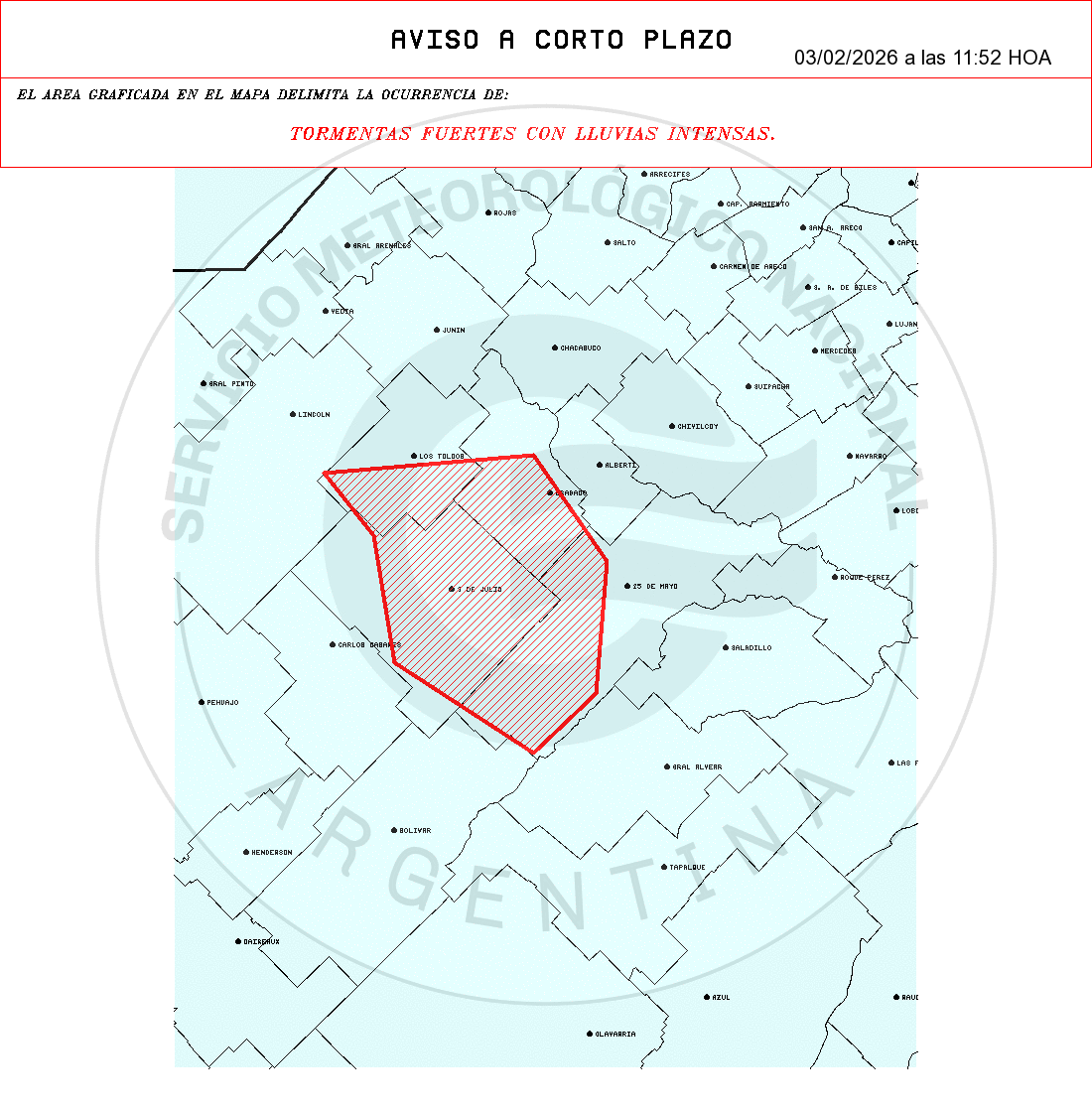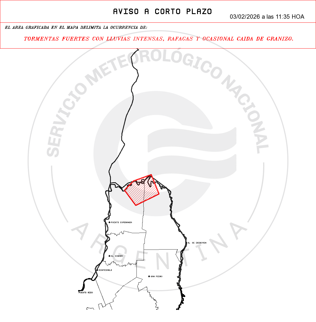 - Medidas de protección: 1- Retirá o asegurá objetos que puedan ser arrojados por el viento. 2- Cerrá y alejate de puertas y ventanas. 3- No te refugies debajo de marquesinas, carteles publicitarios, árboles o postes 4- Permanecé en construcciones cerradas como casas, escuelas o edificios públicos. 5- Desconectá los electrodomésticos y cortá el suministro eléctrico si ingresa agua. 6- Alejate de zonas inundables y no ingreses en calles anegadas. 7- Mantenete alejado de artefactos eléctricos y evitá el uso de teléfonos con cable. 8- Si estás al aire libre, buscá refugio inmediato en un edificio, casa o vehículo cerrado. 9- Para minimizar el riesgo de ser alcanzado por un rayo, no permanezcas en playas, ríos, lagunas o piletas.Los fenómenos indicados en el ACP fueron detectados con radares meteorológicos.