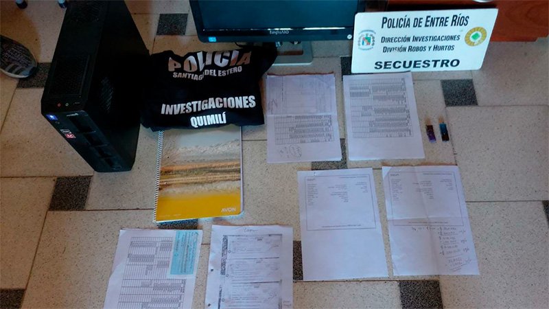 En tal sentido, los efectivos hicieron un allanamiento en la vivienda del encargado del campo y otras dependencias de esa localidad. Secuestraron: una computadora, la cual posee conectado a un adaptador; un pendrive; un cuadernillo anillado con tapa amarilla, con anotaciones varias, en los cuales se detallan transacciones con soja y el viaje a la zona de Quimili; planillas de liquidaciones, una CPU.