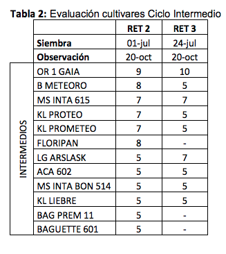 En la Chacra Experimental Integrada de Barrow, se conduce todos los años los ensayos de la RET (Red de Ensayos Territoriales) de trigo pan en 4 épocas de siembra. En la 1° época participan los ciclos largos, en la 2° los intermedios y largos, en la 3° los intermedios y cortos y en la 4° solo los cultivares de ciclos cortos.