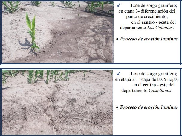 Los montos pluviométricos registrados fluctuaron entre mínimos de 0,5 a 02 mm con máximos de 25 a 30 mm y en lugares muy puntuales, alcanzaron los 45 mm. Continuó siendo muy crítica la situación en el área centro – norte del departamento General Obligado, desde el distrito Avellaneda hacia el norte, en el límite con la provincia del Chaco y el departamento Vera, desde el distrito Garabato hacia el norte, donde no se registraron lluvias y la modificación del estado de la cosecha gruesa fue escasa o nula.