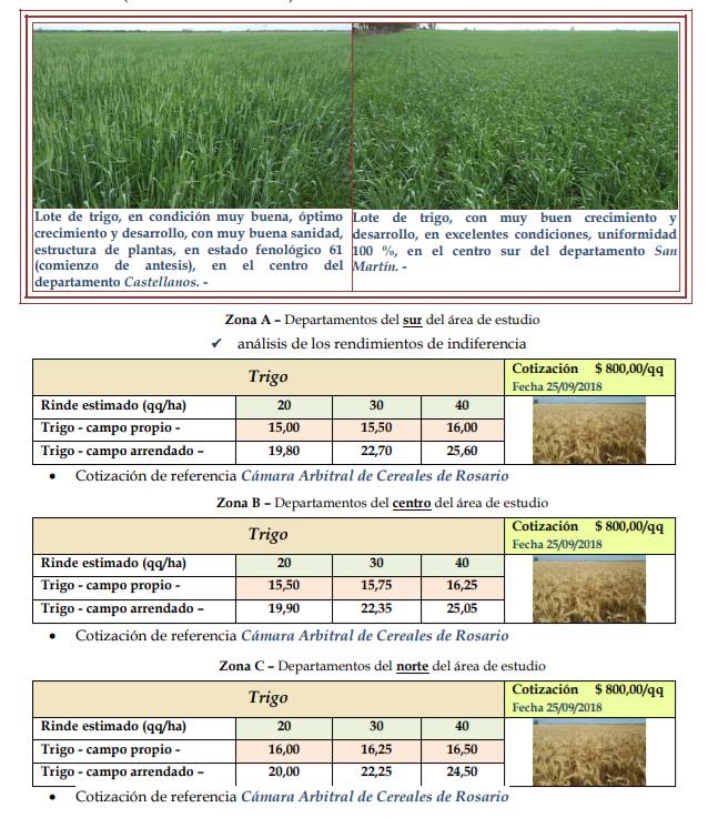 Las precipitaciones registradas en los departamentos del norte y sur del área de estudio cubrieron el aumento de las demandas por parte de los cultivares, situación diferente en los departamentos del centro que no han recibido lluvias, pero han cubierto las necesidades a través de las reservas de los perfiles de los suelos. Etapa clave, porque comenzó a definirse la producción, los estados