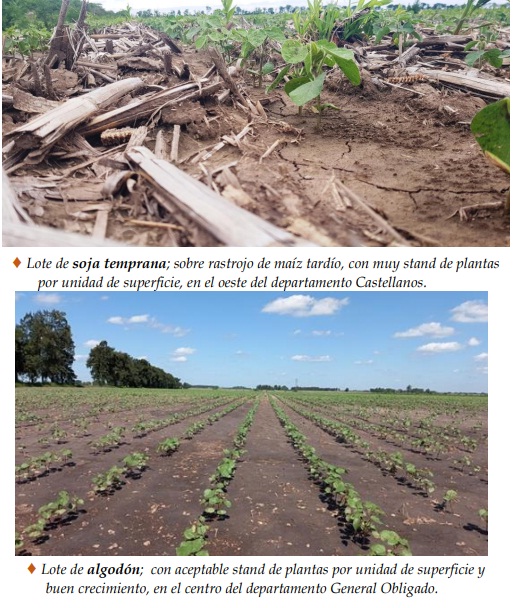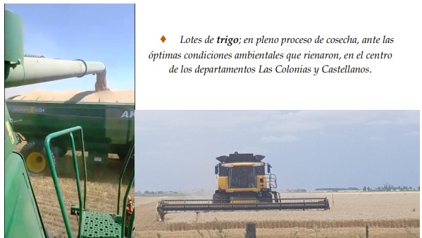 Dichas situaciones, brindaron ambientes óptimos, beneficiosos para el desarrollo pleno de las actividades de cosecha del trigo, siembra de soja temprana, arroz, sorgo granífero, algodón e inicios de soja tardía y monitoreos de los cultivos ya implantados, los que expresaron todo su potencial genético, observándose estados muy buenos, con lotes excelentes
