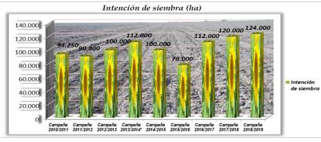 lotes y cerrando con la implantación del mismo. Presentó un grado de avance del orden del 98 %, representando aproximadamente 121.500 ha, con un adelanto de 1 % en comparación a la campaña del año anterior, pero con unas 6.070 ha más sembradas. Recordando que la intención de siembra sería aproximadamente de unas 124.000 ha
