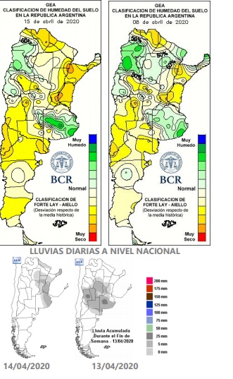 En el relevamiento de esta semana la intención de siembra para la zona núcleo expresa una baja de un 30% hasta una suba de un 10% respecto del área del año pasado. La mayor coincidencia se da en torno al rango de una leve baja o 10% de disminución cuando aún falta todavía buena parte de la cosecha gruesa por recoger. En el centro sur de Santa Fe hay más entusiasmo por el cereal en esta semana. Sin embargo, en el resto de la región hay dudas, sobre todo donde los rindes de segunda han resultado más afectados por la falta de agua. Son varios los factores que se señalan a la hora de la definición: las complicaciones para la provisión de insumos necesarios por el aislamiento, la recarga de agua en el perfil hasta la siembra, la necesidad de financiamiento a fin de año y la posibilidad en el control de malezas. Un ingeniero de Bigand explica que “hay necesidad de hacer trigo para financiarse. De mantenerse la situación actual, con relación a los derechos de exportación y el precio del trigo, se mantendría la superficie (del año pasado)”. En Marcos Juárez, dónde los rindes anduvieron mejor, los técnicos expresan que “continua la incertidumbre por la intención de siembra. Todo dependerá de las lluvias que ocurran hasta la siembra y del contexto nacional. De poder cargarse el perfil habría una reducción leve del área”.