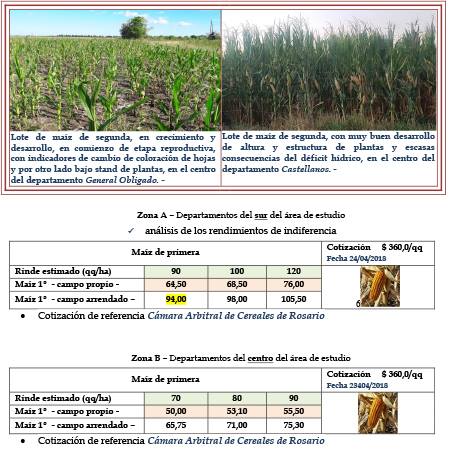 En soja de segunda comenzó en los departamentos del sur del área el proceso de cosecha y los rendimientos revelaron mayor variabilidad y heterogeneidad, con mínimos de 3 qq/ha y máximos de 40 qq/ha. Para el período comprendido entre el miércoles 25 de abril al martes 01 de mayo de 2018, los pronósticos prevén desde el inicio hasta el domingo 29 condiciones climáticas con alto porcentaje de humedad y de inestabilidad que se irían incrementando día tras día, al igual que la nubosidad y altas probabilidades de precipitaciones en toda el área. A posteriori y hasta el final del período, se manifestaría estabilidad climática en los departamentos del centro y sur, así como también la inestabilidad se mantendría en los departamentos del norte del área, y permanecerían los altos porcentajes de humedad ambiente.