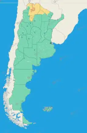 Tucumán: Burruyacú – Capital – Cruz Alta – Famaillá – Graneros – La Cocha – Leales – Simoca – Trancas – Yerba Buena – Zonas bajas de Chicligasta – Zonas bajas de Juan Bautista Alberdi – Zonas bajas de Lules – Zonas bajas de Monteros – Zonas bajas de Río Chico – Zonas bajas de Tafí Viejo – Zona montañosa de Chicligasta – Zona montañosa de Juan Bautista Alberdi – Zona montañosa de Lules – Zona montañosa de Monteros – Zona montañosa de Río Chico – Zona montañosa de Tafí Viejo – Zona montañosa de Tafí del Valle – Zona montañosa de Andalgalá – Zona montañosa de Santa María – Valles de Santa María – Valles de Tafí del Valle
