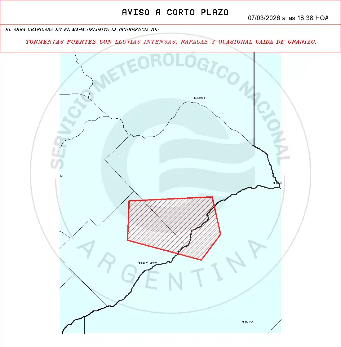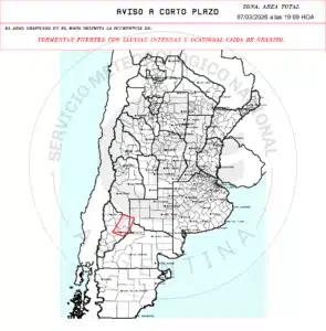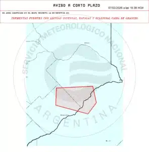 El avance de un sistema de inestabilidad genera tormentas fuertes con lluvias intensas y ocasional caída de granizo en La Pampa, Neuquén, Río Negro y San Luis, con posible impacto en zonas rurales.