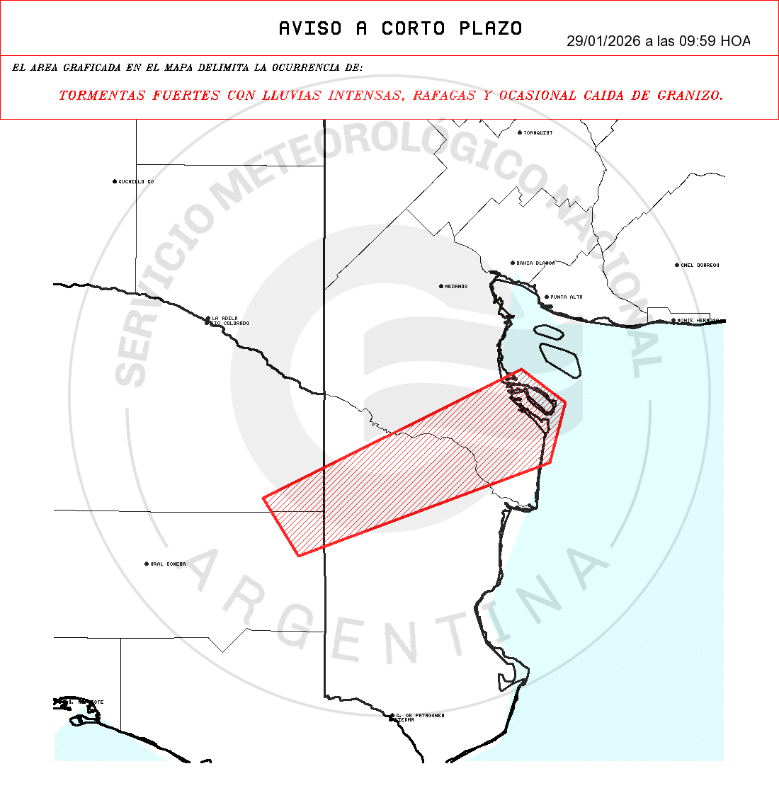 - Medidas de protección: 1- Permanecé en construcciones cerradas como casas, escuelas o edificios públicos. 2- Desconectá los electrodomésticos y cortá el suministro eléctrico si ingresa agua. 3- Alejate de zonas inundables y no ingreses en calles anegadas. 4- Mantenete alejado de artefactos eléctricos y evitá el uso de teléfonos con cable. 5- Si estás al aire libre, buscá refugio inmediato en un edificio, casa o vehículo cerrado. 6- Para minimizar el riesgo de ser alcanzado por un rayo, no permanezcas en playas, ríos, lagunas o piletas.Los fenómenos indicados en el ACP fueron detectados con radares meteorológicos.