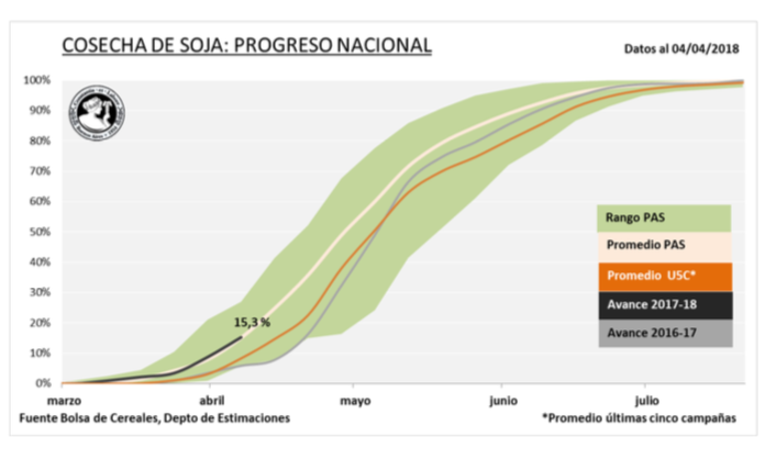 La cosecha avanzó rápidamente sobre lotes de primera en el centro de la región agrícola y a medida que la recolección se agiliza, los rendimientos comienzan a reflejar el verdadero impacto de la sequía. Todas las regiones bajo cosecha, que son de gran importancia debido al área que aportan al total sembrado a nivel nacional, registran mermas de entre -24 y -58 % en sus promedios de rinde en comparación a similar fecha del ciclo previo. No se descarta la posibilidad de que estas brechas interanuales se acentúen a medida que la recolección avance sobre siembras de primera tardías o sobre lotes de segunda. Bajo este escenario la proyección de producción se ajusta a 38 millones de toneladas.