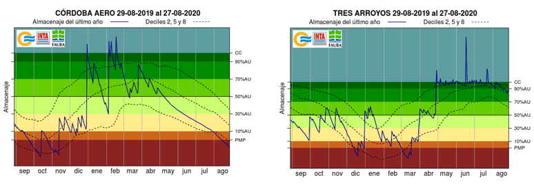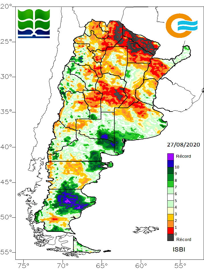 Según un informe elaborado por la cátedra de Climatología y Fenología Agrícolas de la Facultad de Agronomía de la UBA (FAUBA), “Sobre el fin de agosto continúa la falta de lluvias en gran parte del territorio, salvo en el extremo norte de la Mesopotamia. Esto favorece el desecamiento progresivo de los perfiles del suelo, excepto en el este de la provincia de Buenos Aires, donde la humedad edáfica se mantiene aún en niveles adecuados”.