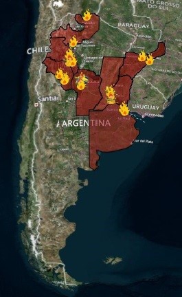 “No sólo Córdoba se ve afectada por los incendios. El reporte del Servicio Nacional de Manejo del Fuego muestra que, al 27 de agosto, son 9 las provincias afectadas por incendios en nuestro país: Salta, Catamarca, La Rioja, Córdoba, Santa Fe, Misiones, Corrientes, Entre Ríos y Buenos Aires. En el Delta de Paraná hay 198.863,25 hectáreas afectadas por el fuego y en Córdoba 7.026. El 95% de los incendios forestales se producen por la intervención del ser humano, la falta de precipitaciones, las temperaturas elevadas, el bajo porcentaje de humedad, las heladas constantes y los vientos fuertes. Todo esto ayuda a que el fuego se propague”, cerró Veliz.