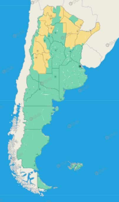 Tucumán: Burruyacú – Capital – Cruz Alta – Famaillá – Graneros – La Cocha – Leales – Simoca – Trancas – Yerba Buena – Zonas bajas de Chicligasta – Zonas bajas de Juan Bautista Alberdi – Zonas bajas de Lules – Zonas bajas de Monteros – Zonas bajas de Río Chico – Zonas bajas de Tafí Viejo – Zona montañosa de Chicligasta – Zona montañosa de Juan Bautista Alberdi – Zona montañosa de Lules – Zona montañosa de Monteros – Zona montañosa de Río Chico – Zona montañosa de Tafí Viejo – Zona montañosa de Tafí del Valle – Zona montañosa de Andalgalá – Zona montañosa de Santa María – Valles de Santa María – Valles de Tafí del Valle