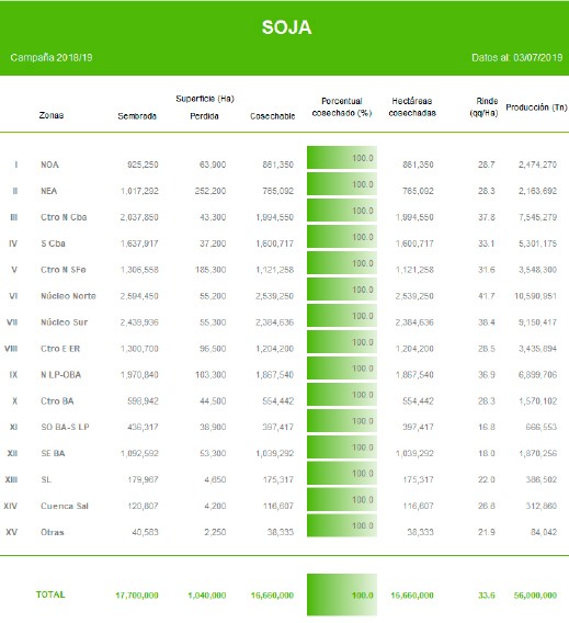 Finalizó la cosecha de soja alcanzando una producción de 56 millones de toneladas, un 60% superior al ciclo anterior