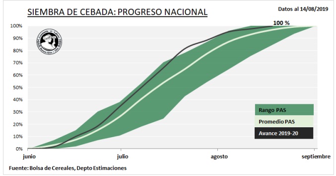 Se relevaron las últimas implantaciones de cebada en región bonaerense y ello permite dar por finalizada la siembra a nivel nacional. Las 950.000 hectáreas implantadas transitan etapas desde emergencia hasta encañazón.