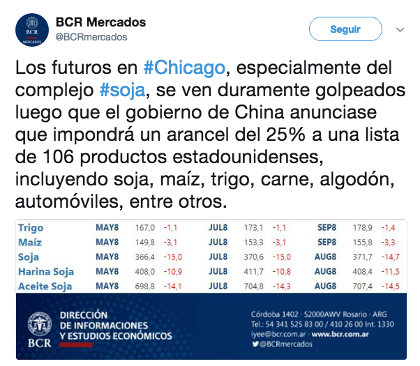 Esto es un coletazo más de la guerra comercial que han decidido entablar China y Estados Unidos, y que en las últimas horas tuvo un nuevo capítulo con la decisión del gigante asiático de imponer aranceles “extra” del 25 por ciento a 106 productos que importa desde el país norteamericano.