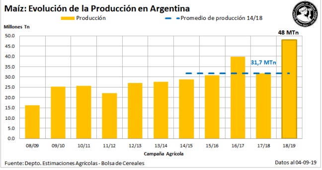 Durante las últimas semanas comenzó la siembra de maíz con destino grano comercial de la campaña 2019/20 en todo el país. Los lotes incorporados a la fecha se corresponden con planteos tempranos del cereal. Los mayores progresos de siembra se dieron en las provincias de Santa Fe y Entre Ríos, y en menor medida sobre Córdoba. Frente a este panorama mantenemos la proyección de siembra en 6.200.000 Ha. Esta superficie representa en números absolutos 200.000 hectáreas más que las sembradas el ciclo que culminó hace pocos días (Campaña 2018/19: 6.000.000 Ha).