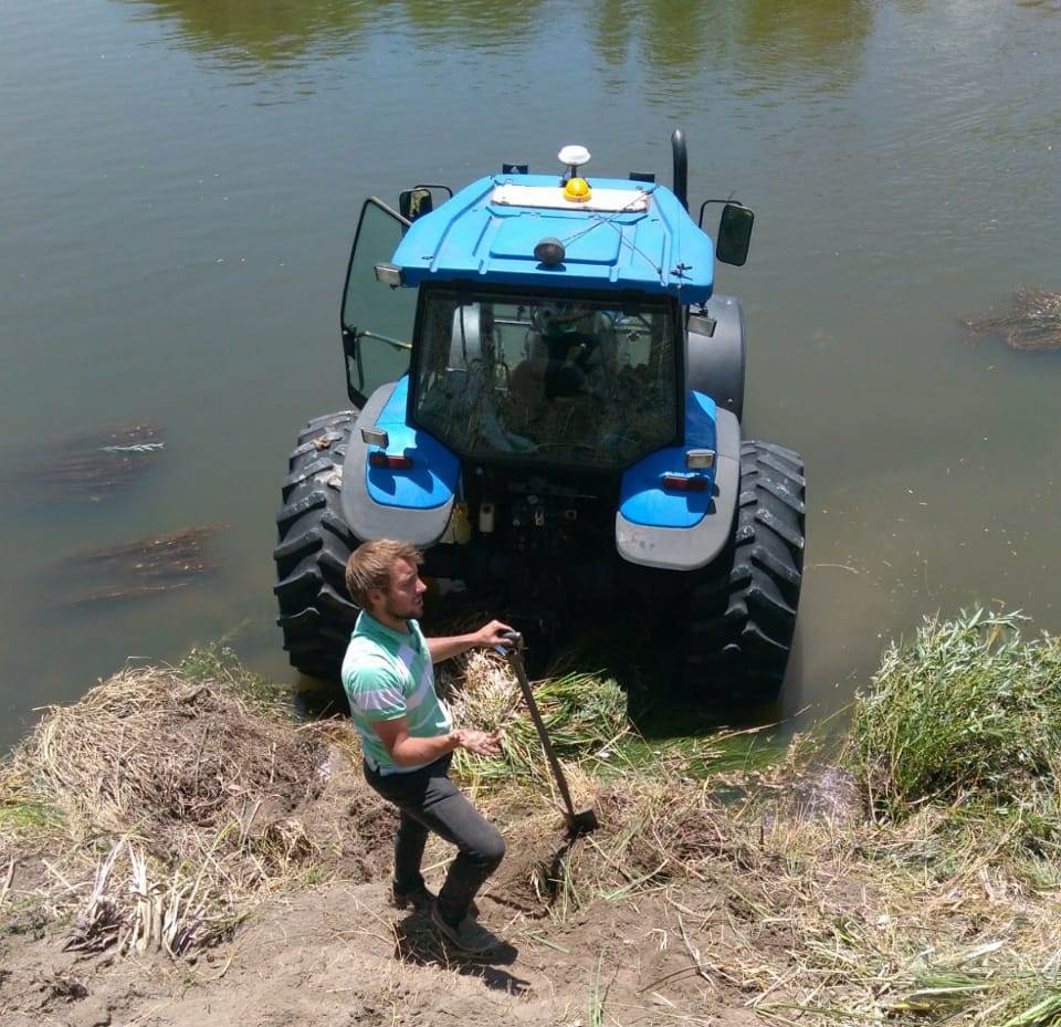 Un rato después llegó una grúa que los levantó y los sacó del agua, y allí constataron que el motor del tractor tampoco sufrió daños. El hecho ocurrió en la zona de Las Cascadas.