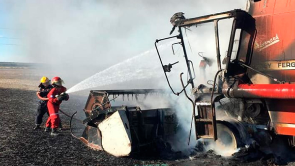 Una cosechadora fue parcialmente consumida por las llamas como consecuencia de un desperfecto mecánico. Se trató de una Massey Ferguson MF 5650, la que fue afectada en la parte de la cabina.