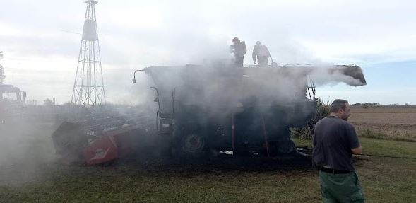 En un campo cercano a la localidad de Irala, provincia de Buenos Aires, se incendió una cosechadora. Bomberos de Morse, O´Brien y Chacabuco debieron sofocar el siniestro el jueves 12 de mayo por la tarde.