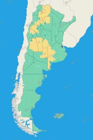 Tucumán: Burruyacú – Capital – Cruz Alta – Famaillá – Graneros – La Cocha – Leales – Simoca – Trancas – Yerba Buena – Zonas bajas de Chicligasta – Zonas bajas de Juan Bautista Alberdi – Zonas bajas de Lules – Zonas bajas de Monteros – Zonas bajas de Río Chico – Zonas bajas de Tafí Viejo – Valles de Santa María – Valles de Tafí del Valle