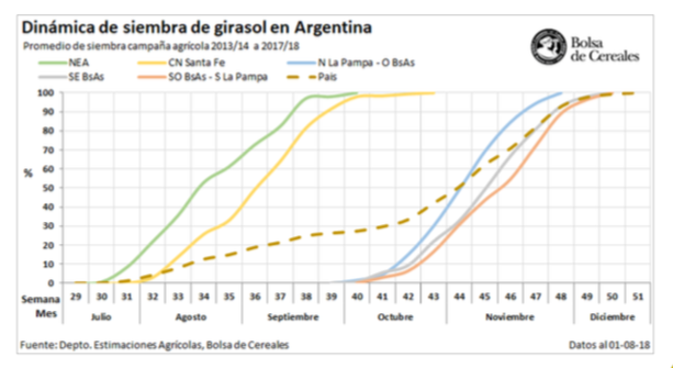 LAS BUENAS CONDICIONES CLMÁTICAS PERMITIERON IMPLANTAR 135.000 HECTÁREAS DE GIRASOL CON UN ADELANTO INTERANUAL DE 2 PUNTOS PORCENTUALES.