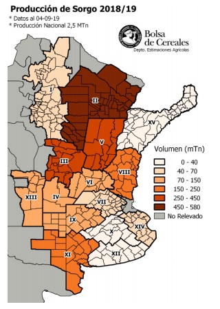 Durante los últimos días culminó la cosecha de sorgo granífero en toda el área agrícola nacional. Luego de relevar un avance intersemanal de 8,7 puntos porcentuales, se lograron recolectar 664.000 Ha durante la campaña 2018/19. El rinde medio nacional de 37,7 qq/Ha permitió acumular una producción total de 2.500.000 Tn, un 7,4 % por debajo del volumen del ciclo previo (Producción 2017/18: 2.700.000 Tn).