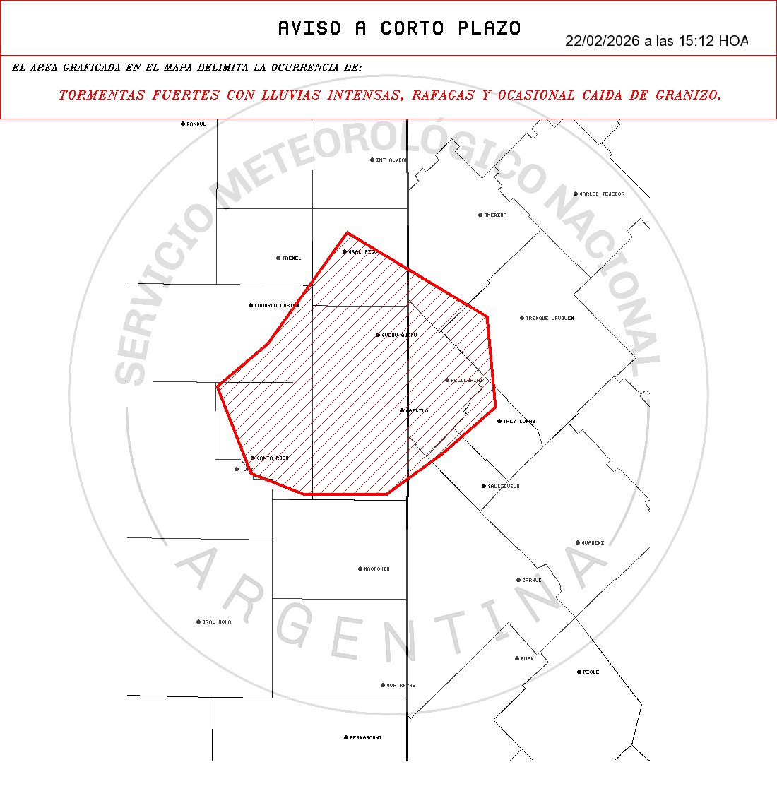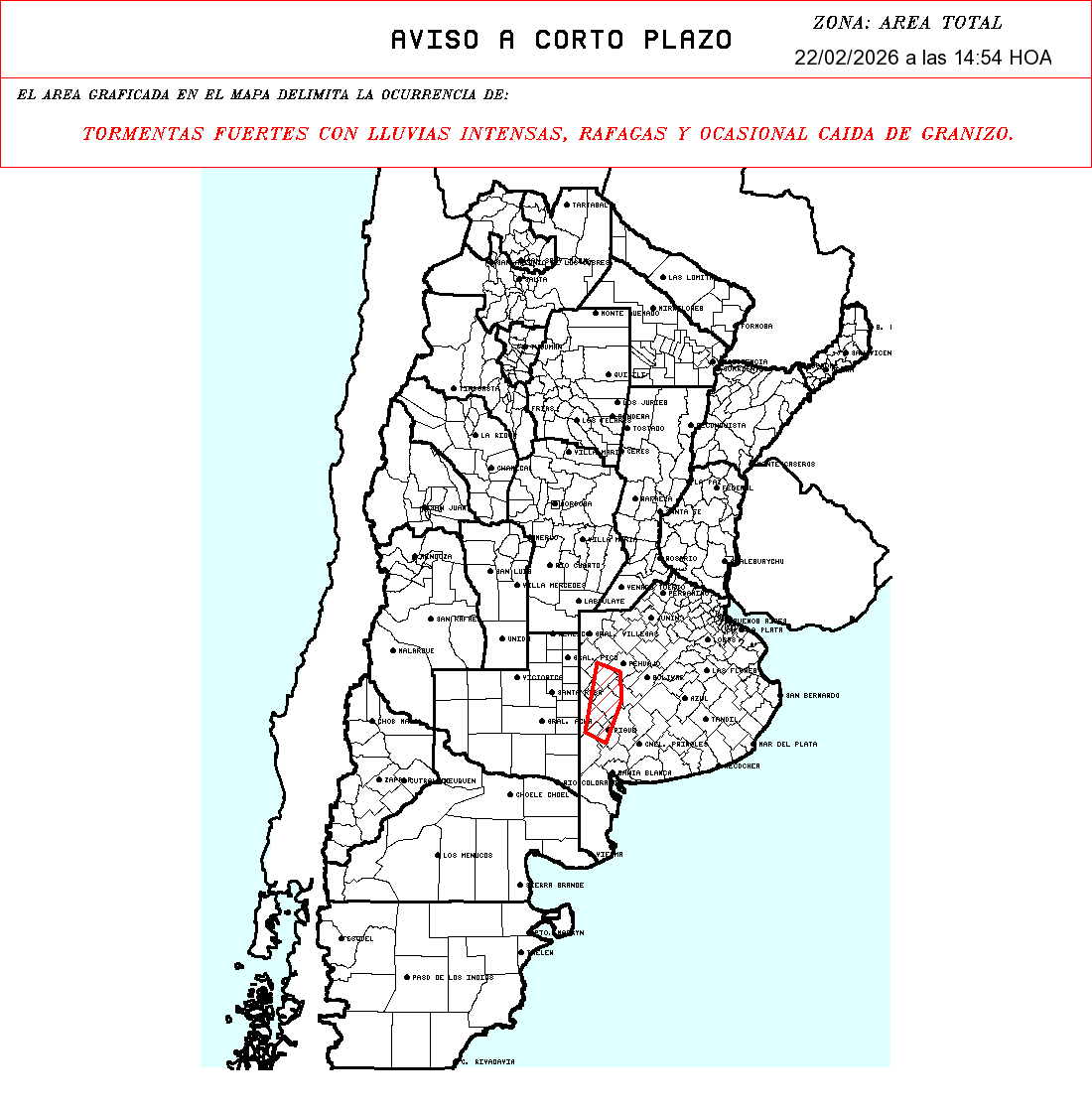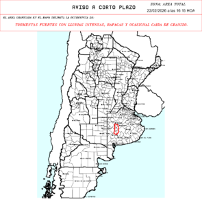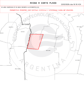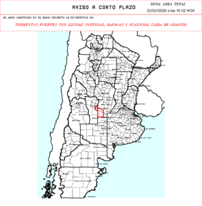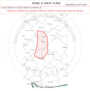 Cinco avisos meteorológicos están activos por tormentas fuertes que avanzan sobre Buenos Aires, Córdoba, La Pampa y San Luis. Se esperan lluvias intensas en cortos períodos, ráfagas fuertes y granizo ocasional, con impacto directo en zonas rurales y actividades productivas.