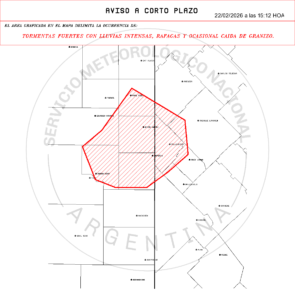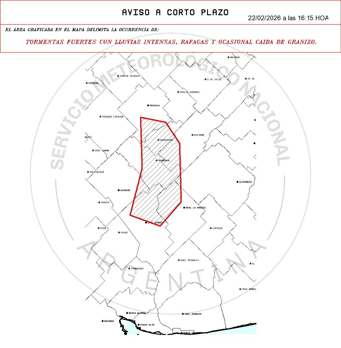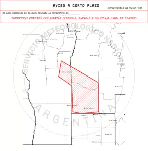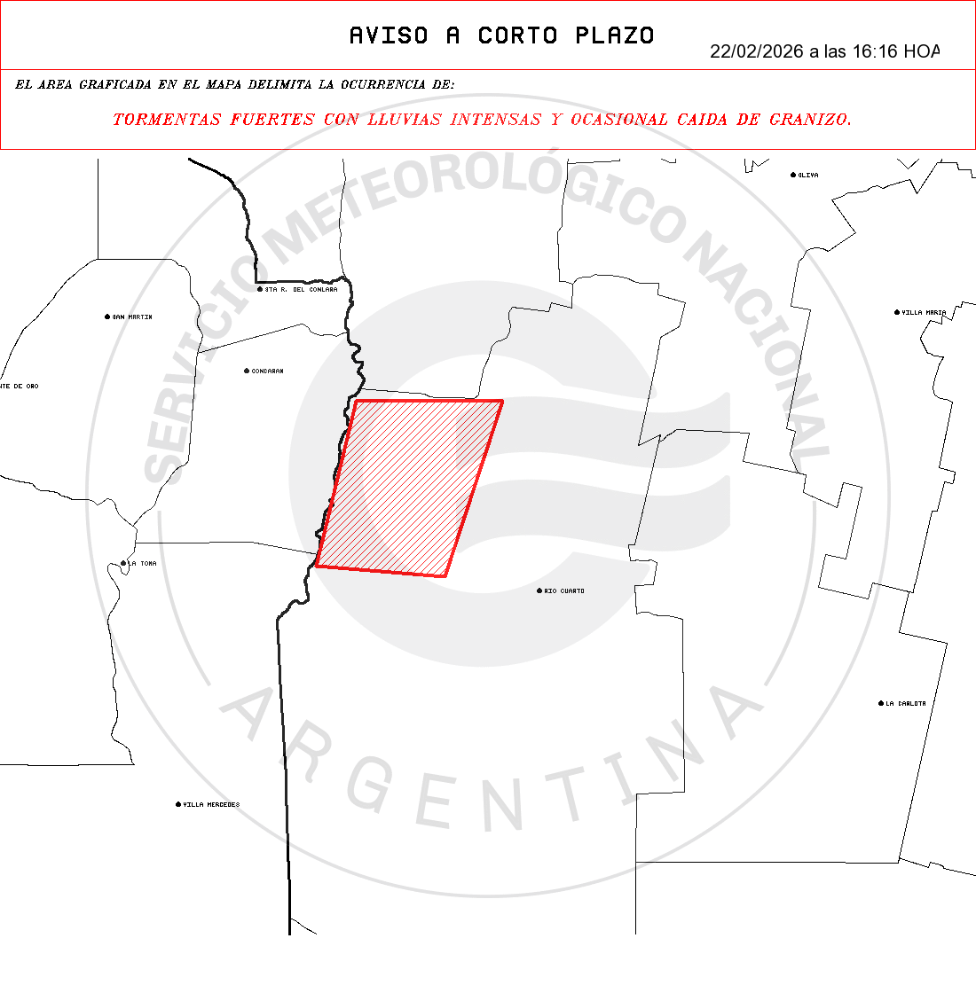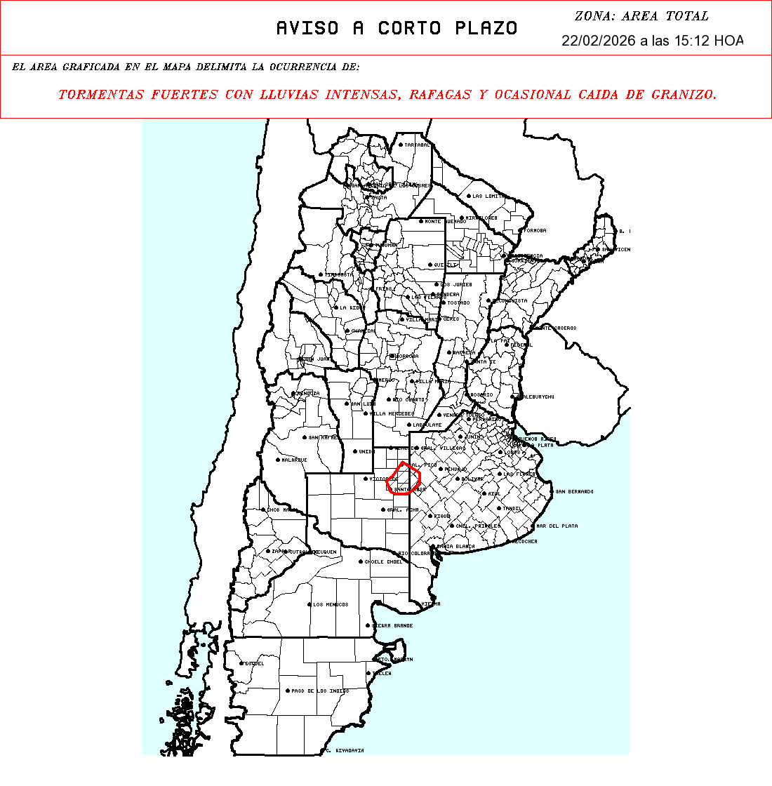 Cinco avisos meteorológicos están activos por tormentas fuertes que avanzan sobre Buenos Aires, Córdoba, La Pampa y San Luis. Se esperan lluvias intensas en cortos períodos, ráfagas fuertes y granizo ocasional, con impacto directo en zonas rurales y actividades productivas.