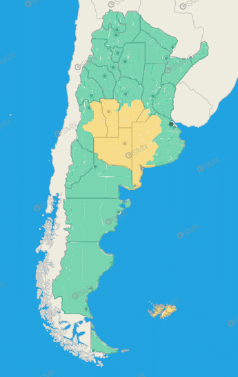 Buenos Aires: Florentino Ameghino – General Villegas – Rivadavia – Bolívar – Carlos Casares – Carlos Tejedor – Hipólito Yrigoyen – Pehuajó – Adolfo Alsina – Daireaux – Guaminí – Pellegrini – Salliqueló – Trenque Lauquen – Tres Lomas – Zona serrana de Coronel Pringles – Zona serrana de Coronel Suárez – Zona serrana de Saavedra – Zona serrana de Tornquist Norte de Bahía Blanca – Oeste de Patagones – Oeste de Villarino – Puan – Zona baja de Coronel Pringles – Zona baja de Coronel Suárez – Zona baja de Saavedra – Zona baja de Tornquist – Costa de Patagones – General La Madrid – Laprida – Olavarría – Arrecifes – Capitán Sarmiento – Carmen de Areco – Chacabuco – Colón – General Arenales – General Pinto – Junín – Leandro N. Alem – Lincoln – Pergamino – Rojas – Salto – Alberti – Bragado – Chivilcoy – General Viamonte – Nueve de Julio – Veinticinco de Mayo