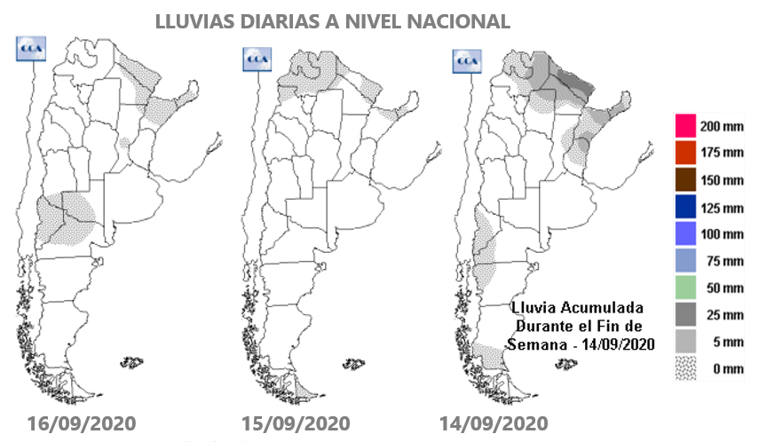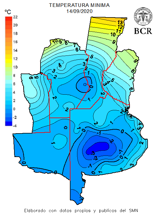 Y en total, con la semana pasada, el avance logrado es del 45%, 675.000 ha de las 1,5 M de ha que planean sembrar como maíz de primera. ¿Y por qué el apuro? Ante la falta de pronósticos de lluvias a corto plazo, —no se esperan lluvias en la próxima semana— la región busca aprovechar los acumulados de fines de agosto y principios de setiembre. Esas lluvias fueron claves para el trigo, la primera lluvia importante que recibió el cultivo desde que se sembró, pero también brindaron una oportunidad de oro para poder sembrar ahora casi la mitad del maíz temprano. Pero hay riesgos, la temperatura del suelo está en torno a los 10°C y se registraron temperaturas por debajo de los cero grados en el último fin de semana, como en Canals, Marcos Juárez, Rojas o Venado Tuerto. En el centro de Buenos Aires los registros superaron los 3 grados bajo cero: Olavarría alcanzó -3,5°C. Y vuelven a pronosticarse heladas para sábado y domingo: “podrían producirse algunas heladas débiles y aisladas, especialmente sobre el oeste de la zona GEA”.