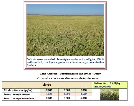 Un progreso de cosecha hasta la fecha fue del 70 % del total implantado, lo que representó 22.400 ha, con un avance intersemanal de 15 puntos porcentual, situación que fue favorecida por la estabilidad climática en casi la totalidad del período monitoreado. Los rendimientos promedios se mantuvieron y fluctuaron entre 5.500 y 5.800 kg/ha, evidenciando una muy leve disminución en este período. A medida que avanzó la cosecha, sobre los lotes que estuvieron inundados el rendimiento descendió en forma muy abrupta. En cuanto a la calidad comercial fue buena a muy buena.